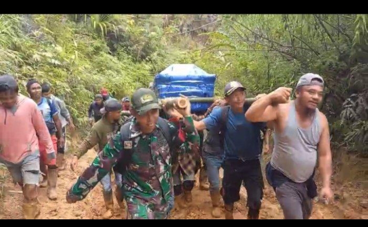 Kondisi medan yang ekstrem menjadi tantangan tersendiri. Jalan berlumpur dan penuh lubang membuat kendaraan tak bisa melintas. Namun, di balik keterbatasan itu, terpantul ketulusan, kerja sama, dan kekuatan solidaritas antara TNI dan masyarakat.