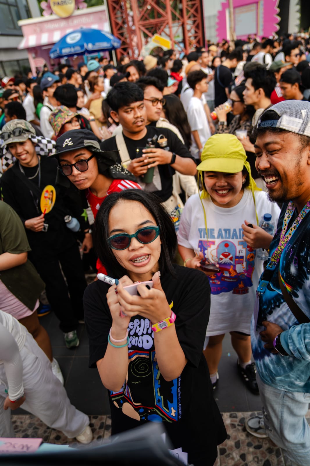 Kejutan dimulai ketika trailer resmi Perempuan Pembawa Sial diputar di layar videotron utama di sela-sela penampilan musisi. Sorak penonton pun pecah, sekaligus menandai rasa penasaran terhadap kisah kelam yang akan tayang di bioskop mulai 18 September 2025.Tak hanya itu, booth film ini menjadi salah satu spot terfavorit pengunjung. Berbagai aktivitas unik ditawarkan, mulai dari mewarnai poster seram wajah Didik Nini Thowok, melukis topeng pengusir kesialan, hingga menuliskan “kalimat sialmu” di papan khusus sebagai simbol buang sial.
