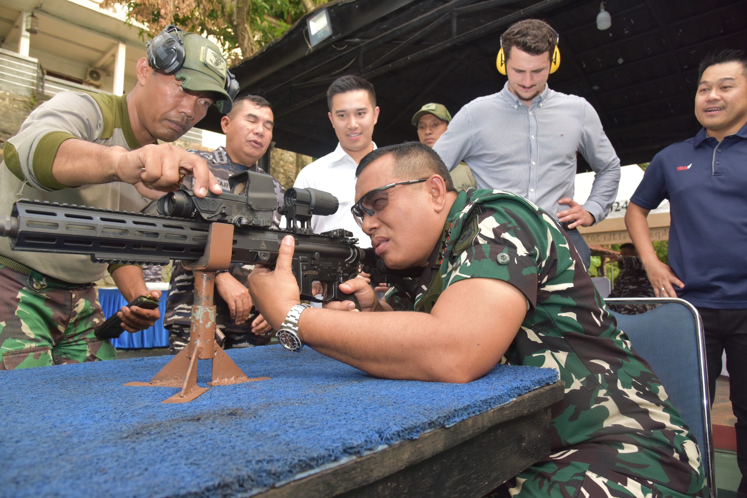 Panglima Korps Marinir secara langsung mencoba alat ini dengan menembak sasaran yang telah disiapkan, didampingi oleh Kepala Staf Korps Marinir, Mayor Jenderal TNI (Mar) Muhammad Nadir, M.Tr.Opsla., serta Komandan Pasmar-1, Mayor Jenderal TNI (Mar) Ili Dasili, dan juga Wadan Pasmar-1 yang turut menjajal fitur canggih alat tersebut.
