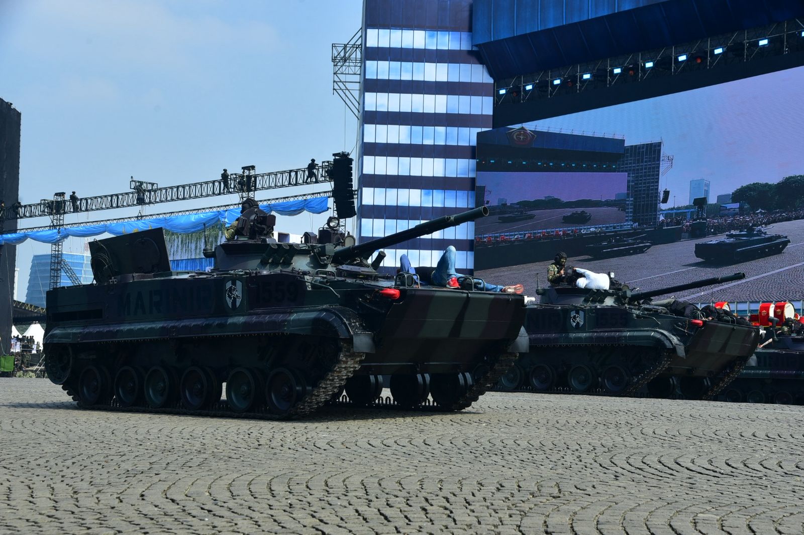 Aksi heroik prajurit Marinir menjadi bagian dari rangkaian atraksi spektakuler yang ditampilkan dalam upacara megah tersebut. Bersama pasukan dari matra lain, prajurit Korps Marinir memperagakan demonstrasi bela diri taktis, aksi serbuan dari ketinggian gedung, serta pengerahan kendaraan tempur amfibi seperti BMP-3F, BTR-4M, dan LVT-7. Atraksi ini berpadu dengan berbagai pertunjukan lain seperti Jupiter Aerobatic Team, Rajawali Laut, Pencak Silat Militer (PSM), hingga Circuit Training yang menggambarkan kekuatan fisik prajurit TNI.