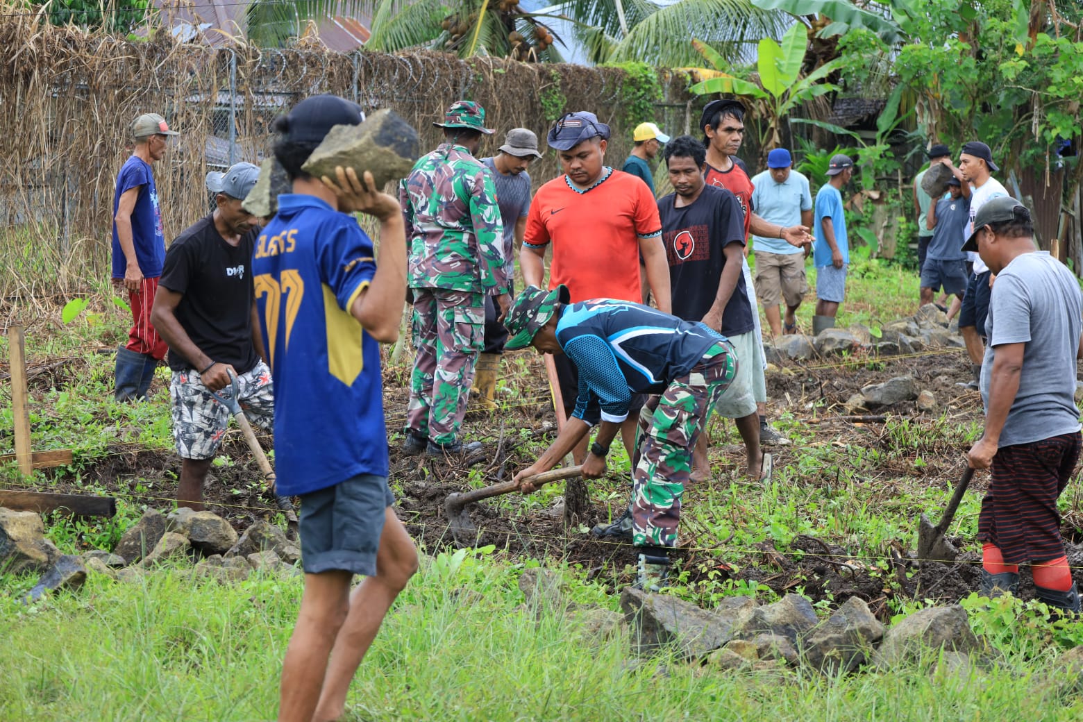 Hari Pertama TMMD Ke-126 Kodim 1505/Tidore, Personel Satgas dan Warga Mulai Kerjakan Sasaran Fisik di Desa Wama