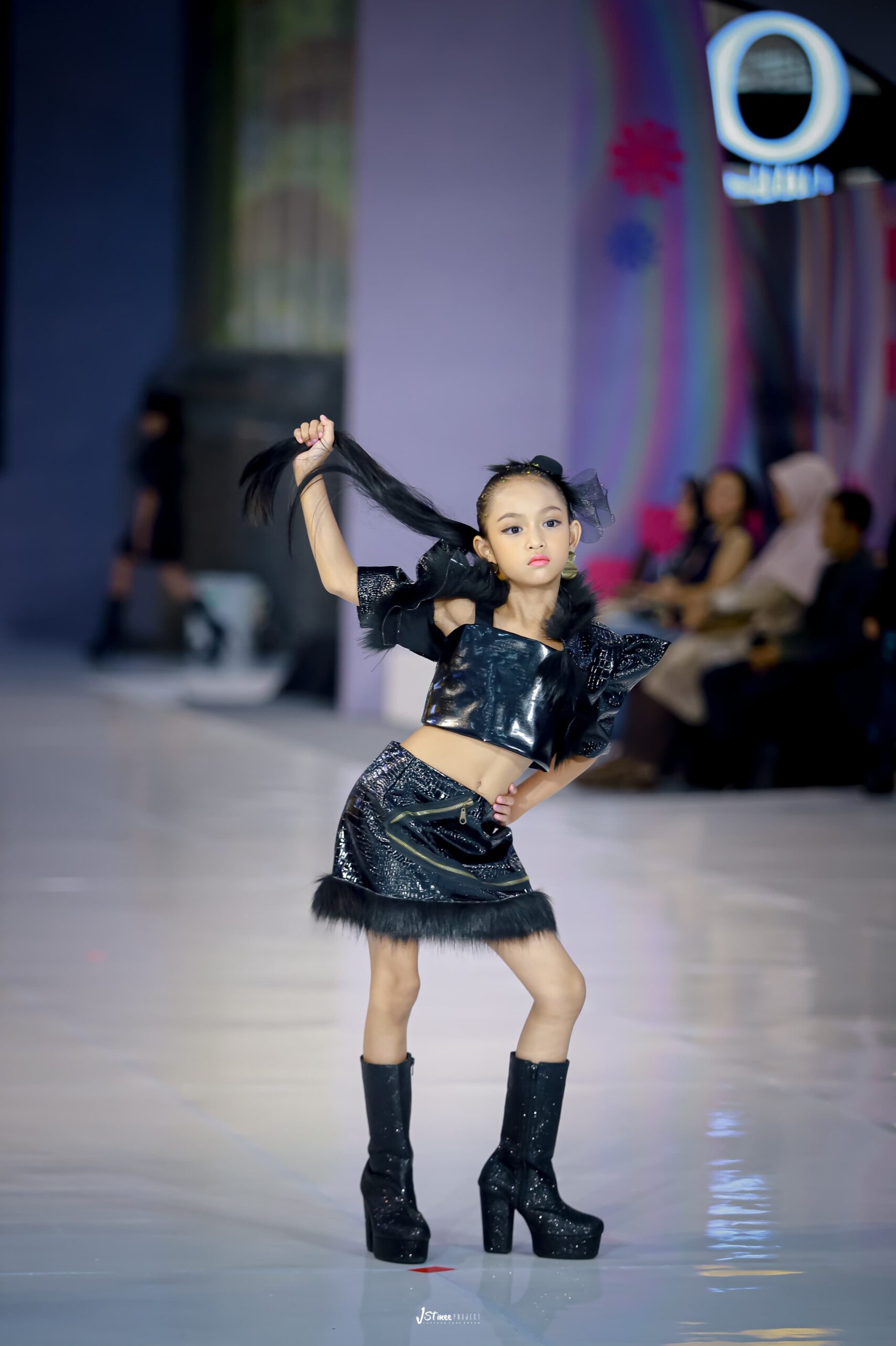 Di hari pertama, Aleeya melangkah dengan anggun membawakan koleksi dari desainer ternama asal Jember, Winda Stine. Dengan tema “Casual Black,” Aleeya menampilkan gaya yang elegan namun tetap santai, menunjukkan kekuatan dan statement dari warna hitam dalam busana anak-anak.