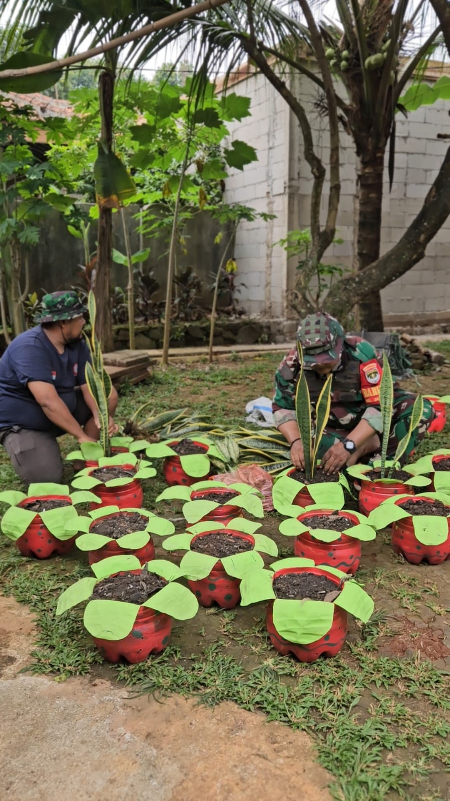 Tidak sekadar wacana, ide itu langsung diwujudkan. Dengan semangat gotong royong, Sertu Lilik bersama warga mengumpulkan galon bekas air mineral dan mendaur ulangnya menjadi pot bunga yang berwarna-warni. Hasilnya, lebih dari 100 pot berhasil dibuat untuk menghias taman yang kini menjadi kebanggaan warga Jatiraden.
