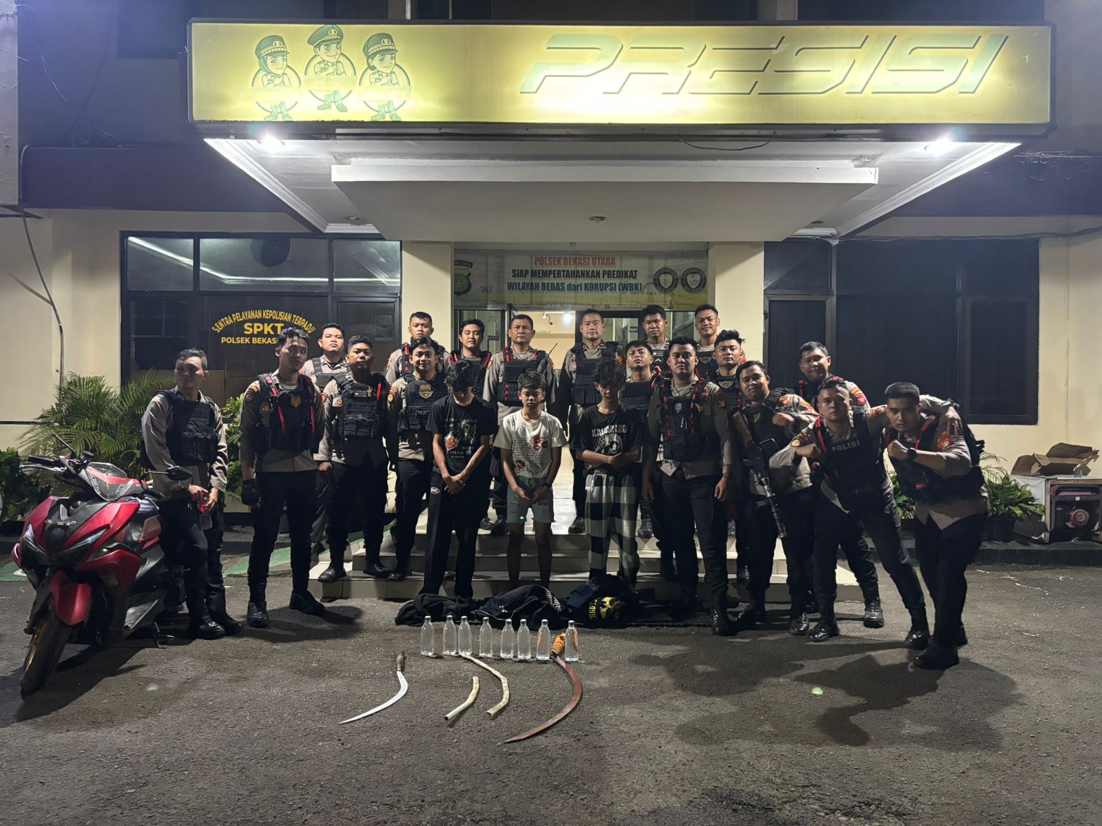 Ketiga remaja beserta seluruh barang bukti telah diamankan dan diserahkan ke Polsek Bekasi Utara untuk proses hukum dan pembinaan lebih lanjut. Situasi pasca penangkapan dilaporkan aman dan kondusif.