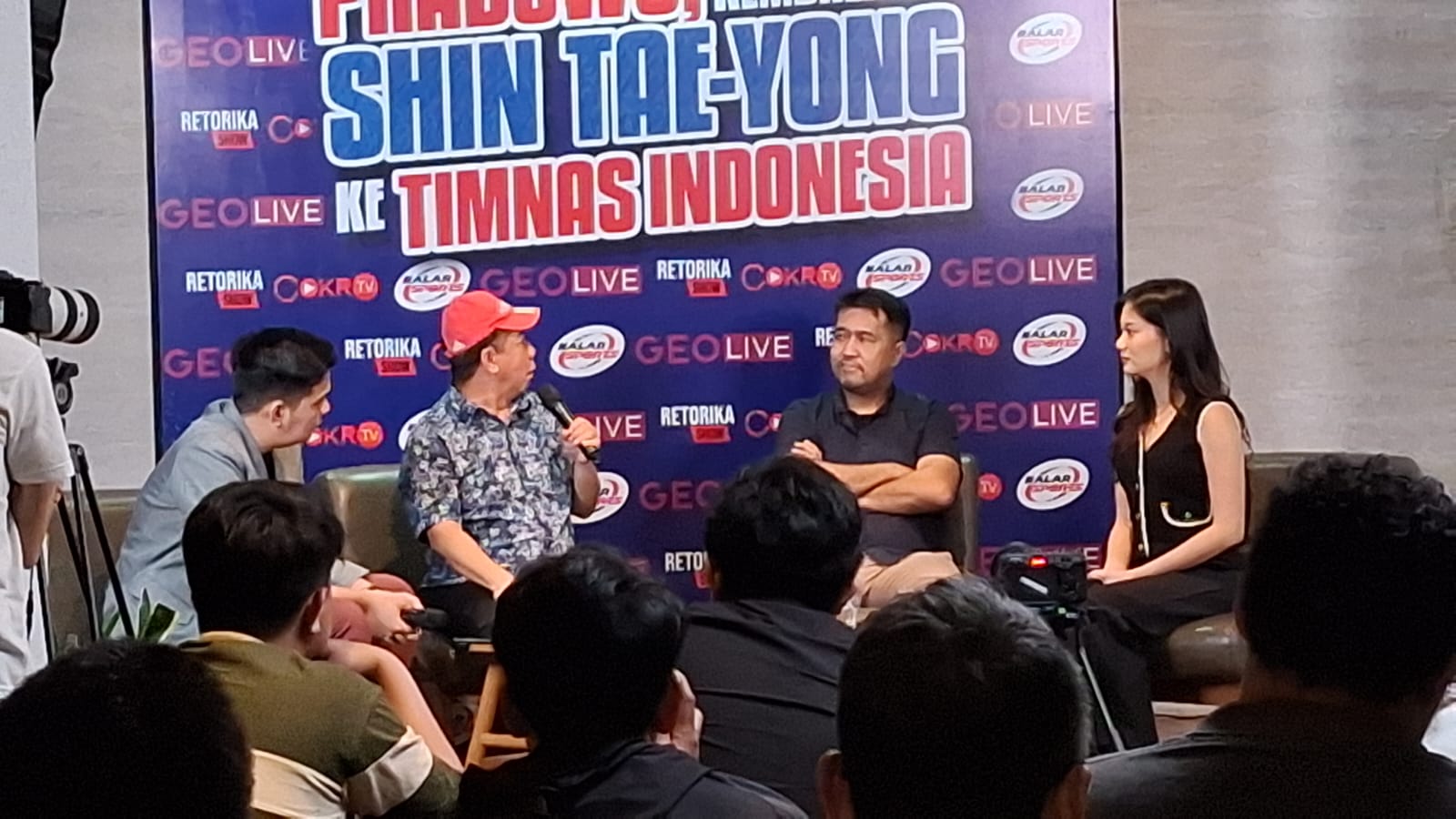 Diskusi ini dipandu oleh Noella Sisterina dan James Purba, menghadirkan sejumlah narasumber lintas bidang seperti Haris Pardede (pengamat sepak bola), Effendi Gazali (pakar komunikasi politik sekaligus pecinta Timnas Indonesia), serta Andre Rosiade, politisi Partai Gerindra yang hadir melalui sambungan Zoom Meeting.