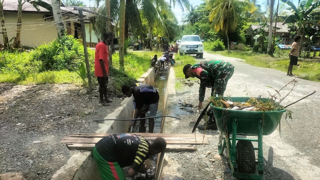Timika – Dalam upaya menjaga kebersihan lingkungan serta menumbuhkan pola hidup sehat, Babinsa Koramil 1710-07/Mapurujaya Serka Selamet Riyadi ajak warga binaan kerja bakti bersihkan parit di Kp. Ayuka, Distrik Mimika Timur Jauh, Kab. Mimika, Jumat (21/11/2025). Kegiatan ini berfokus pada pembersihan parit di kanan dan kiri badan jalan untuk melancarkan aliran air, mencegah genangan, dan menjaga kebersihan lingkungan sekitar.