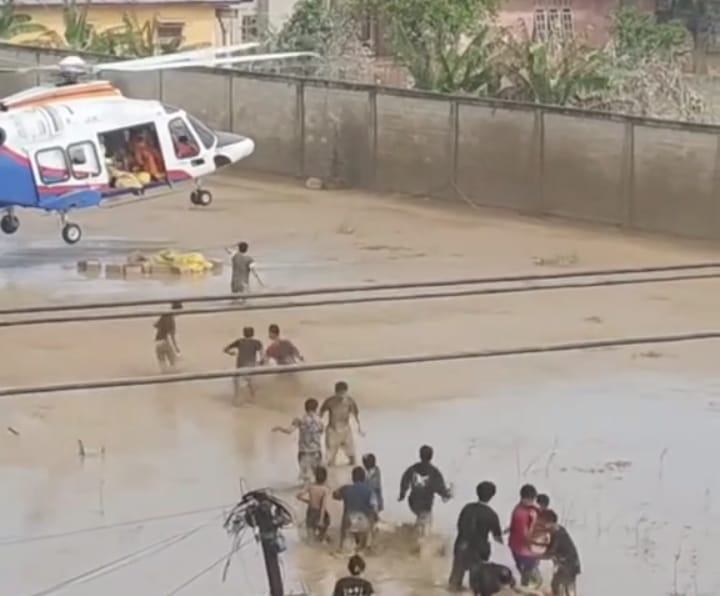 Kondisi terkini di Aceh Tamiang menunjukan lokasi terdampak yang layak untuk dilakukan pendaratan helikopter untuk droping logistik sangat minim. Sebab, genangan air banjir bandang masih menggenangi sebagian besar daratan.