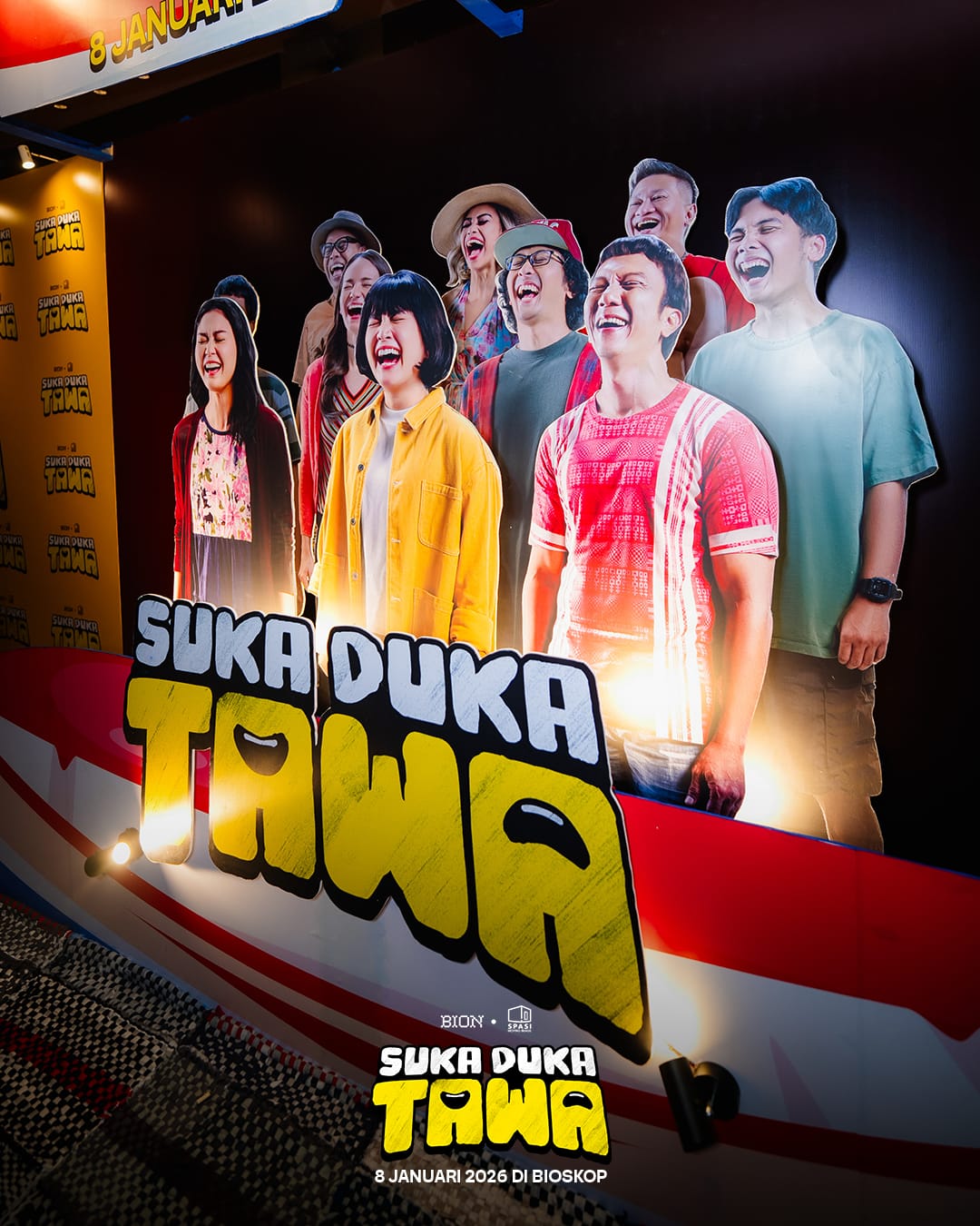 Tonton film Suka Duka Tawa di bioskop mulai 8 Januari 2026 di bioskop Indonesia. Ikuti perkembangan terbaru dari film Suka Duka Tawa persembahan BION Studios dan Spasi Moving Image melalui akun-akun media sosial resmi.