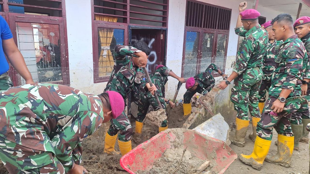 Dengan mengerahkan personel dan dukungan alat berat Zeni Marinir, prajurit melaksanakan pembersihan saluran air, parit, rumah warga, fasilitas umum, serta sekolah-sekolah yang terdampak lumpur, pasir, dan material kayu akibat banjir. Kegiatan ini bertujuan untuk memulihkan aktivitas masyarakat agar dapat kembali berjalan normal.