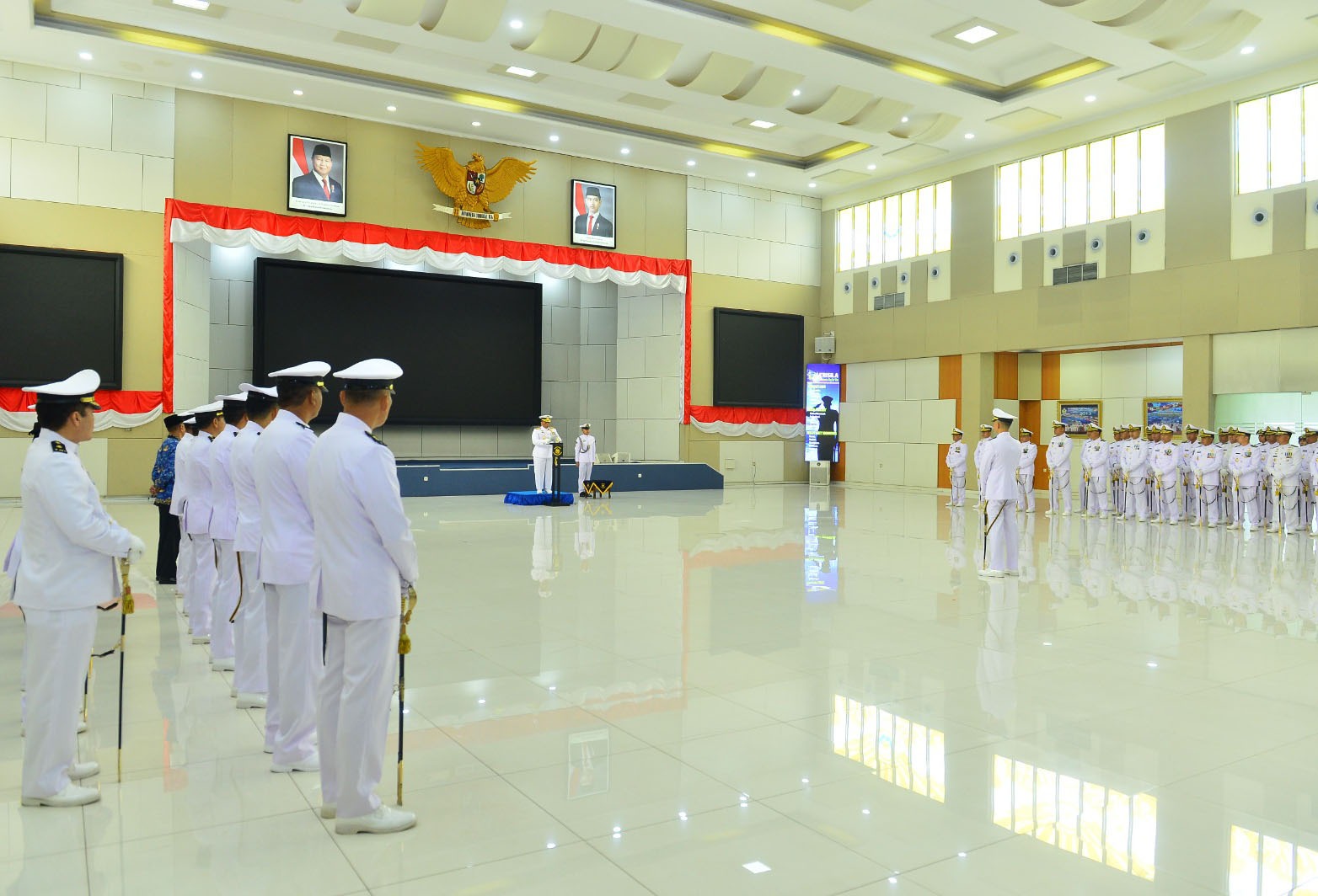 Komandan Sekolah Staf dan Komando Angkatan Laut (Danseskoal) Laksamana Muda TNI Ariantyo Condrowibowo diwakili Wadan Seskoal Laksamana Pertama TNI Dr. Ferry Supriady, S.T., M.M., M.Tr.Opsla., CIQaR. selaku Inspektur Upacara (Irup) memimpin upacara peringatan Hari Dharma Samudera tahun 2026, bertempat di auditorium Jos Soedarso Seskoal, Cipulir, Kebayoran Lama, Jakarta Selatan, Kamis (15/01/2026).