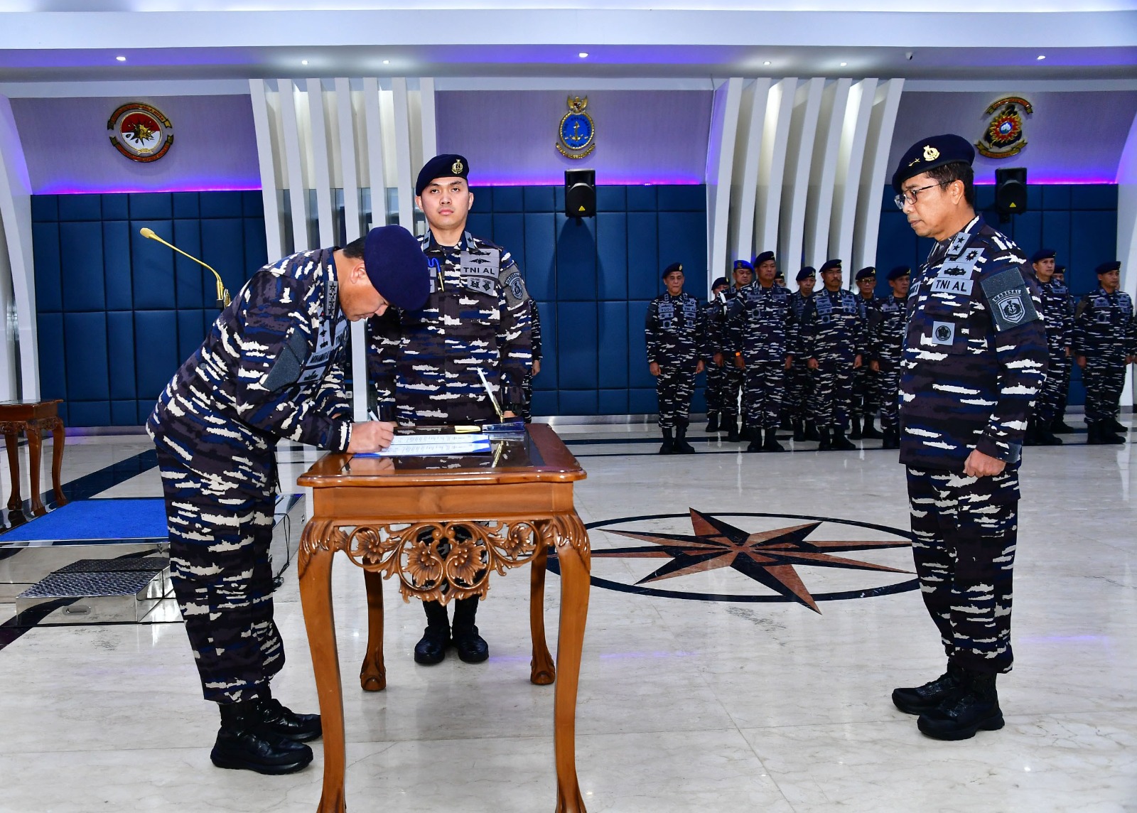 Komandan Sekolah Staf dan Komando Angkatan Laut (Danseskoal) Laksamana Muda TNI Ariantyo Condrowibowo didampingi Ketua Cabang Berdiri Sendiri Jalasenastri Seskoal Ny. Dian Ariantyo Condrowibowo menghadiri upacara penyerahan jabatan Asisten Personalia Kepala Staf Angkatan Laut (Aspers Kasal) dari Laksamana Muda TNI Dr. Bambang Irwanto, M.Tr.Han., CHRMP. kepada Kasal Laksamana TNI Dr. Muhammad Ali, S.E., M.M., M.Tr.Opsla., dihadiri Ketua Umum Jalasenastri Ny. Fera Muhammad Ali, bertempat di ballroom Wisma Elang Laut (WEL), Menteng, Jakarta Pusat, Jumat (27/02/2026).