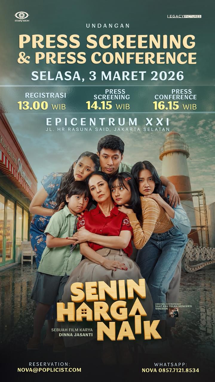 JAKARTA,CentangSatu.com — Lebaran selalu identik dengan pulang, maaf, dan pertemuan yang lama tertunda. Di momen itulah film Senin Harga Naik hadir sebagai suguhan hangat bagi keluarga Indonesia. Diproduksi oleh Starvision yang telah lebih dari tiga dekade berkarya, film ini menjadi proyek kolaborasi bersama Legacy Pictures untuk menyambut Lebaran 2026.